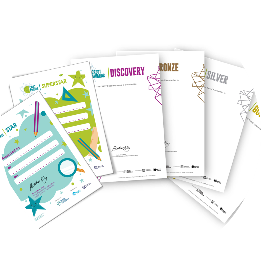 You can find our CREST Star and SuperStar challenge collection packs in our Resource Library. Each activity includes an organiser’s card with instructions, highlighted safety points and a resource list. Alternatively, you can use your own activities towards the awards, providing they meet our assessment criteria. When entering the CREST Star and SuperStar on our CREST application platform platform, you will be asked to record which 6 to 8 challenges your students have completed. In instances where you have used your own activity, please record this by choosing 'Other' from the drop-down list.