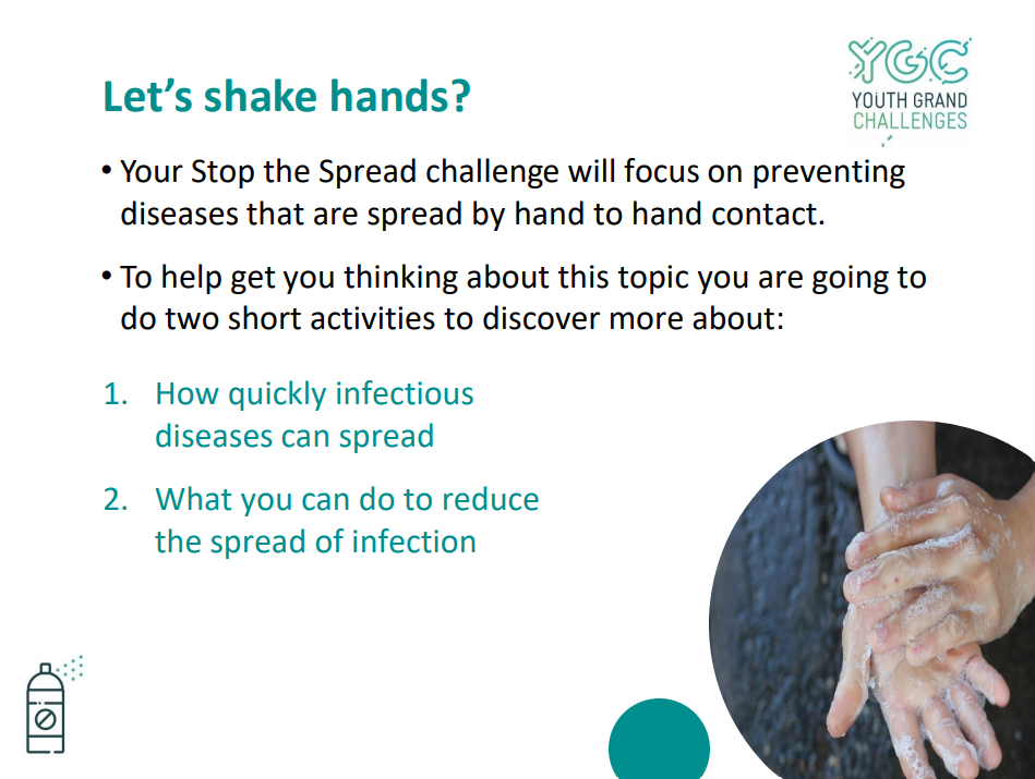 These slides are designed to be used in the classroom to support the delivery of the Stop the Spread Discovery challenge. This five hour project asks students to work in teams to design and build a hand washing device for a school in Kenya.