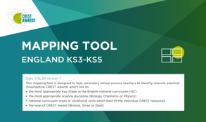 This mapping tool is designed to support secondary science educators identify relevant investigative CREST projects which link to the English National Curriculum, by Key Stage and curriculum area.