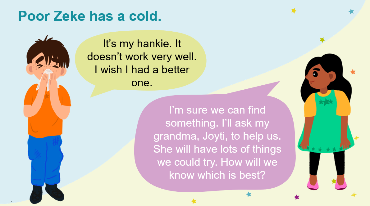 These supporting slides accompany the Sniffly Sneezes Star challenge, providing colourful visuals and key instructions to help you run this activity with your learners. Sniffly Sneezes is designed to get children thinking about the strength and absorbency of materials. Can they help Zeke find a better hankie to blow his sore nose?